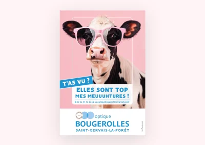 L’agence FLAMINGO Communications a accompagné l’opticien Bougerolles dans la conception et la réalisation de ces affichages publicitaires, en assurant :